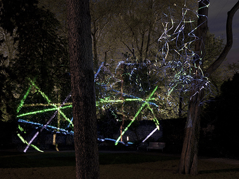 Schaut man sich die IN SICH zusammenhängende Installation an, die durch Lichtwellen durchströmt wird, sehen wir immer nur einen Teil dessen, was sie eigentlich ist.